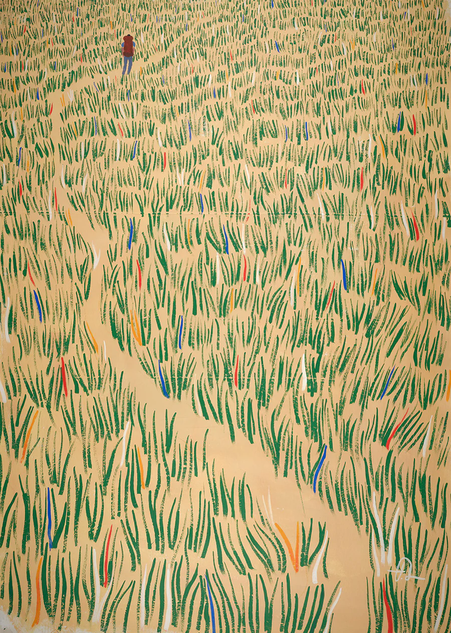 Si je devais mentionner un artiste contemporain qui, (encore une fois il me semble), est une sorte de descendant joyeux de Van Gogh et Gauguin, dont le cœur est pour l'océan et le surf, c'est Frank Lavater (site, instagram). C'est un énorme coup de cœur. J'aime le mouvement des vagues et des herbes, les reflets couleurs primaires et le bonheur simple qui se dégage de ses toiles.